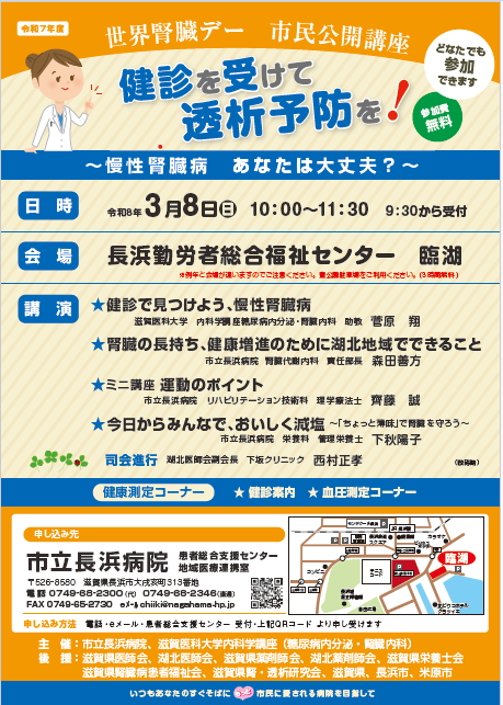 | 会場 | 市立長浜病院2階講堂 ※講師は滋賀医科大学よりZoomにて講演します。 |